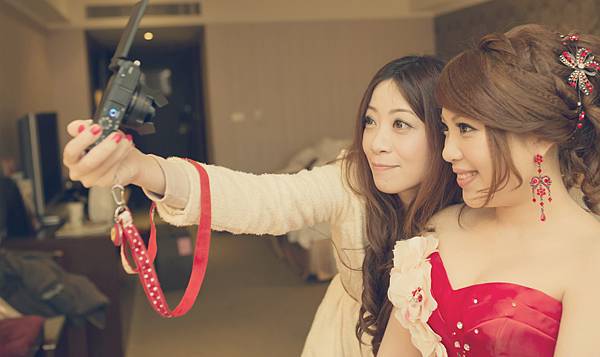 新娘穿上美麗的嫁衣 梳化完後 閨密們忍不住要留下美麗的畫面 婚禮攝影在旁拍下這屬於閨密的永恆畫面~~